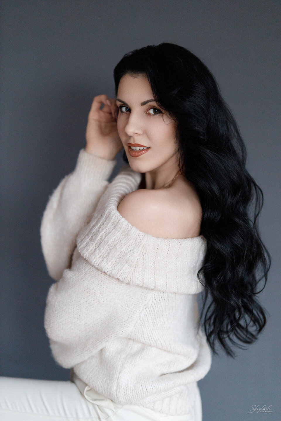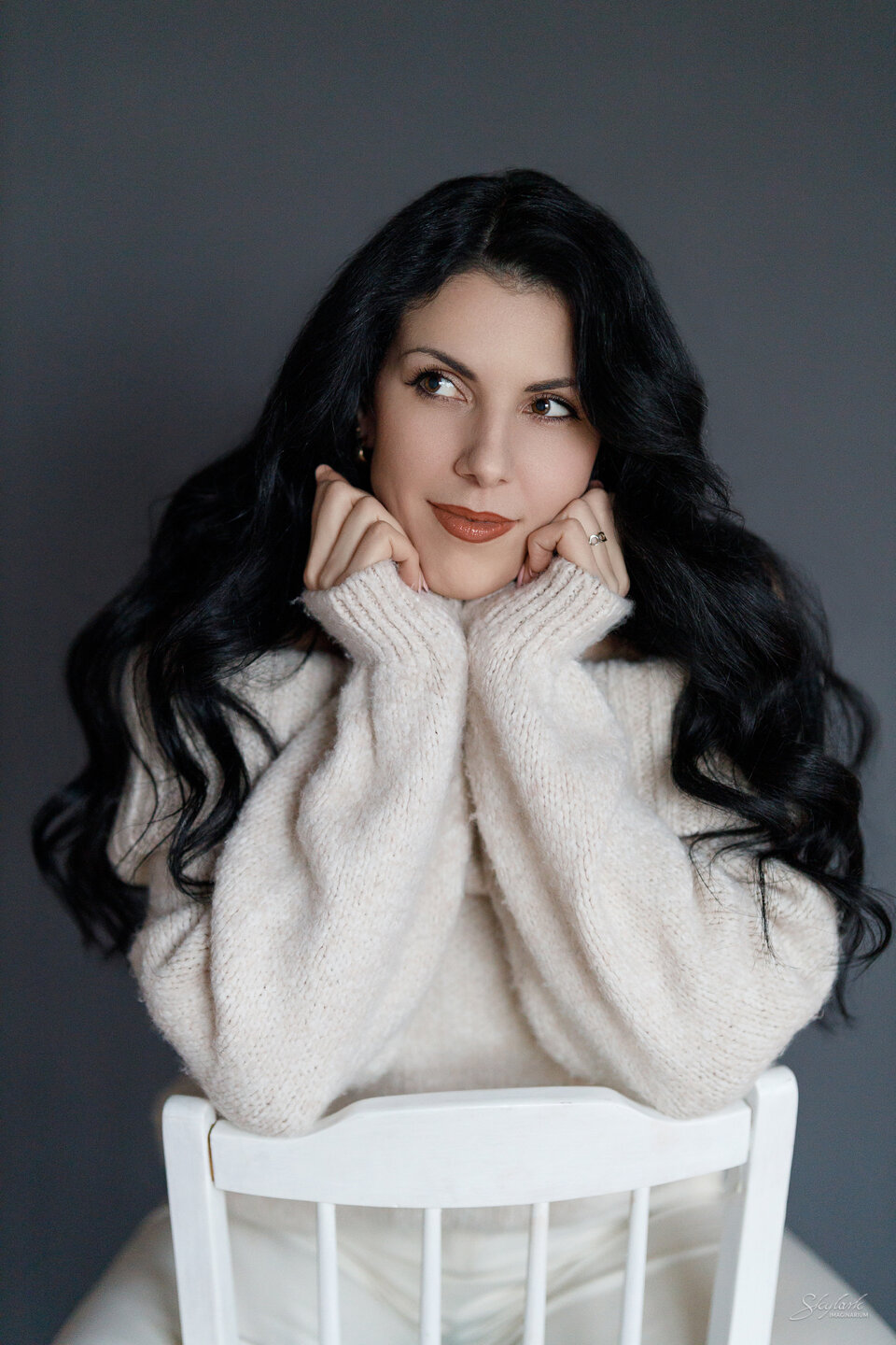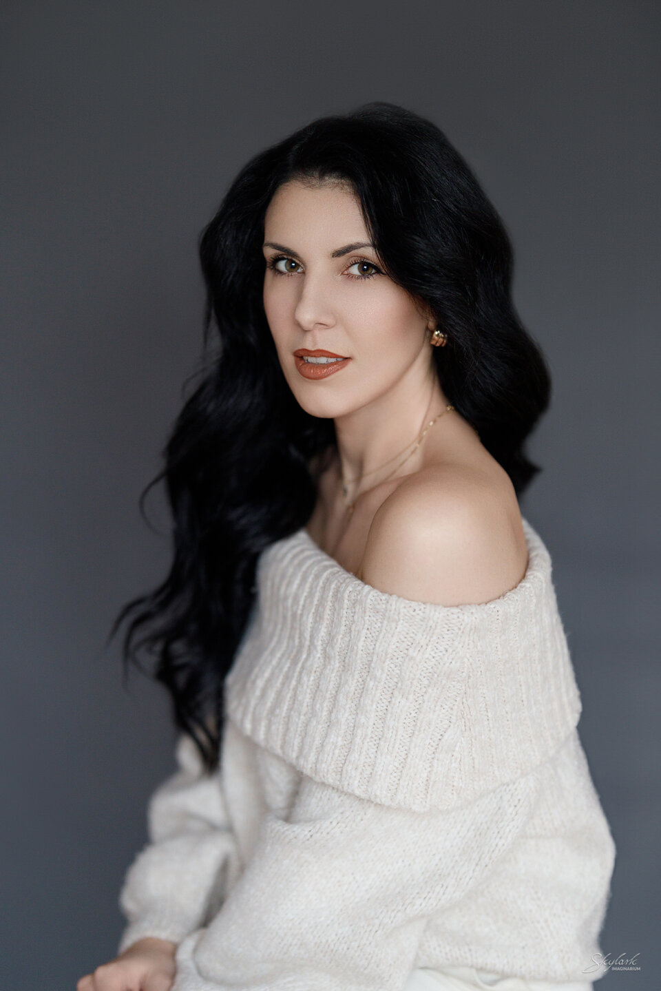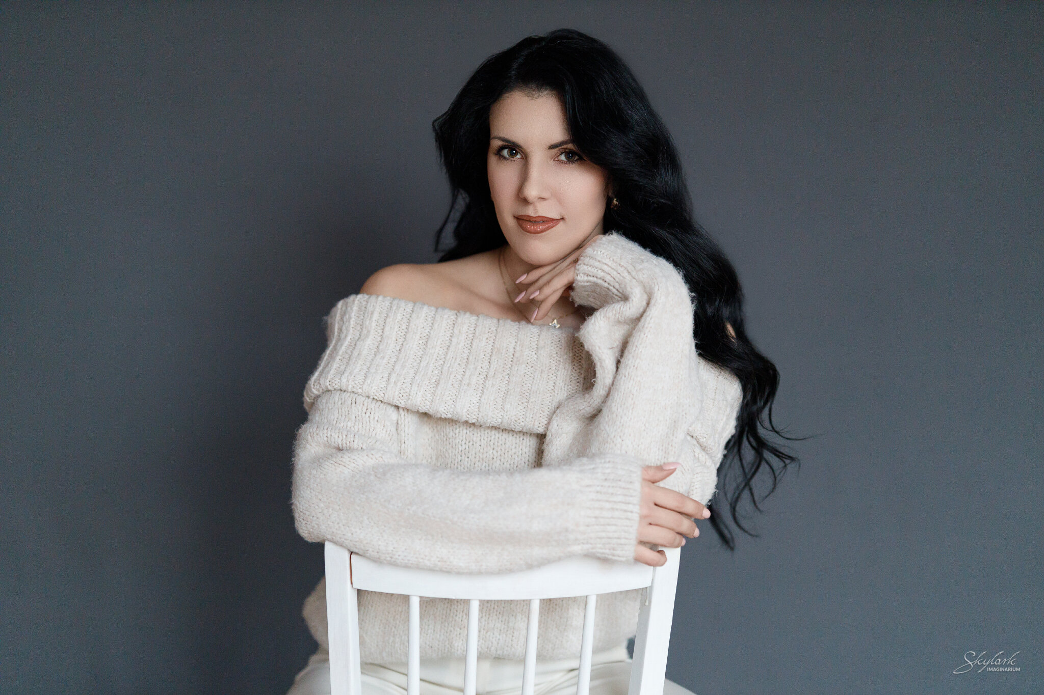 Pierwsze proste portrety szybko pokazały mi, że autofokus z wykrywaniem oka to prawdziwa rewolucja. Nie muszę już kombinować z pojedynczym punktem, przekadrowywać, starając się nie zmienić płaszczyzny ostrości i jeszcze nie poruszyć zdjęcia. Teraz kadr za kadrem powstaje w ułamkach sekund. Właśnie w ten sposób w naturalnym świetle, na neutralnym, szarym tle, zrobiliśmy kilka pierwszych ujęć.